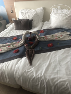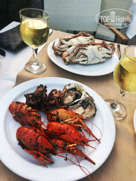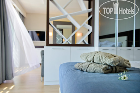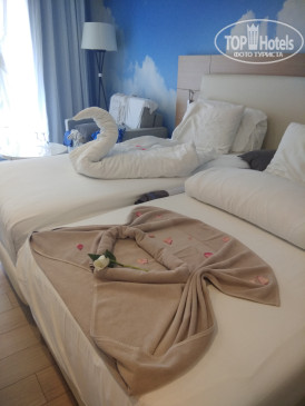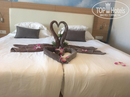 Проживали в номере 315 с видом на море. Номер чистый,просторный,все работает, мини-бар пополняется. Белье меняли за неделю три раза, полотенца тоже.Вид с балкона " бомбический".Еды много, вкусно.На пляже много мест, у бассейна тоже. Отсутствие детей- огромный плюс. Территория маленькая, но очень уютная. Немного разочаровал " аля-карт", не вкусно и огромное количество муравьев курсирующих по скатерти, пришлось уйти.